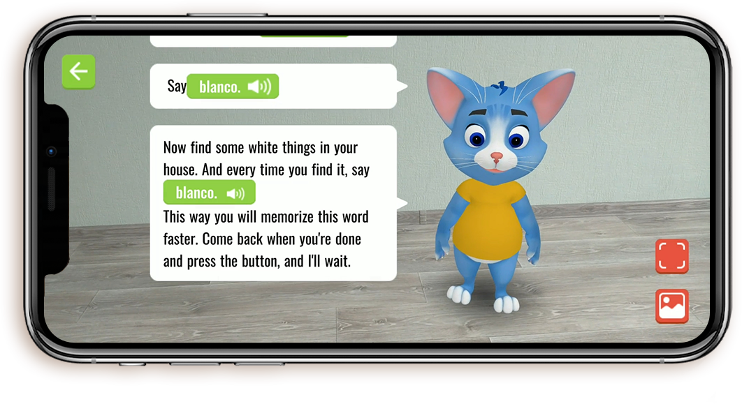 Poco a poco, su hijo irá mostrando cada vez más interés en el idioma y querrá saber los nombres de las cosas que le rodean. Basta con enfocar la cámara del teléfono a cualquier objeto en la casa y Niko dirá cómo se dice en inglés.